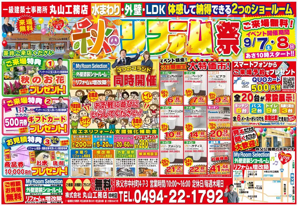2024年9月7(土)・8(日)は深谷ショールームへ!台風やゲリラ豪雨への備えは万全ですか?お得な二日間に是非ご来場&ご相談ください♪ いつもありがとうございます。埼玉県秩父/深谷地域のリフォーム・増改築・リノベーションは丸山工務店へお任せください!