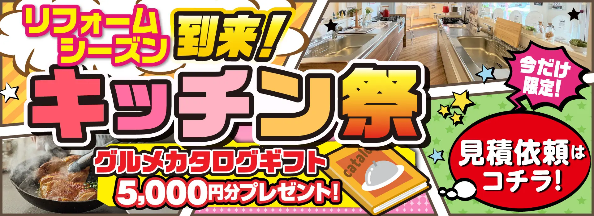 【秩父・深谷ショールーム】7/8~8/26の期間中に、キッチンリフォームご成約の方にグルメカタログギフト5000円分プレゼント!まずはコチラからご来店予約して見積からスタート! この機会をどうぞお見逃しなく! いつもありがとうございます。埼玉県深谷市・熊谷市・秩父市・寄居町のリフォーム・増改築・リノベーションは丸山工務店へお任せください!