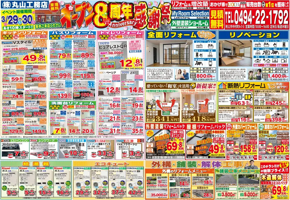 2024年3月29(土)・30(日)は秩父ショールームへ!おかげ様で8周年を迎えることができました。恒例の春のお花の苗プレゼント♪もうすぐ過去最大級の補助金制度がスタートします。ご相談受付中ですので是非この機会にご来場ください!