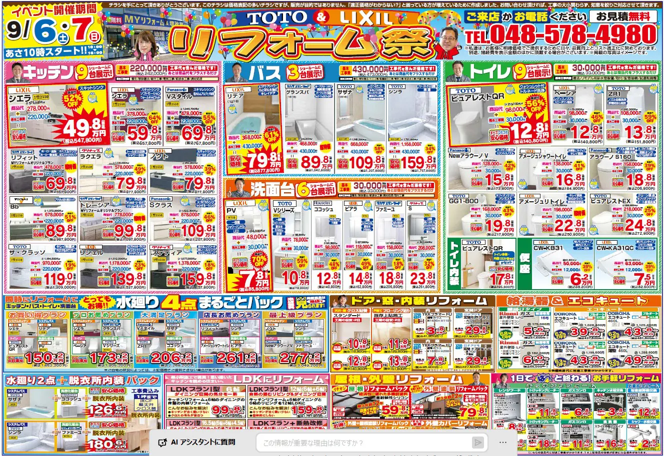 2025年9月6(土)・7(日)は深谷ショールームへ!水廻りといえばTOTOとLIXIL!この2大メーカーの商品を大特集します♪特典いっぱいのイベントに家族皆様でぜひご来場ください!!