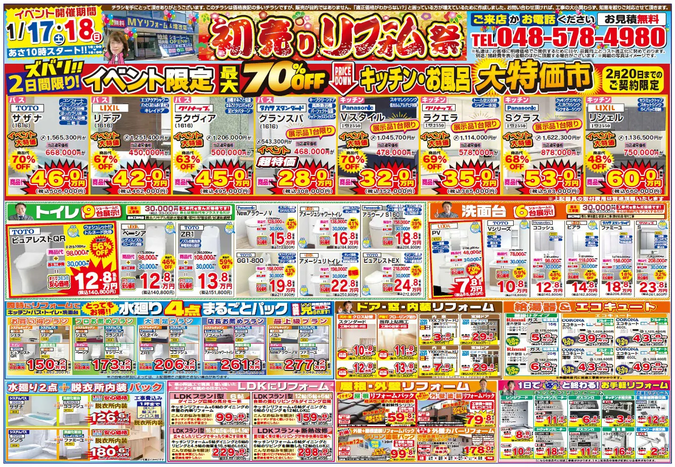 2026年1月17(土)・18(日)は深谷ショールームへ!イベント限定大特価市!最大70%OFF♪お得なこの機会をお見逃しなく!!ご家族皆様でのご来場をお待ちしています