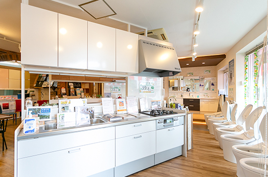 丸山工務店は、地域No.1の品揃えを誇る、水まわり専門ショールームがあります。キッチン・お風呂・トイレなど、全6メーカー・47台を実物展示。実際に“見て・触れて・比べて”選べるから、リフォームがぐっと身近になります。