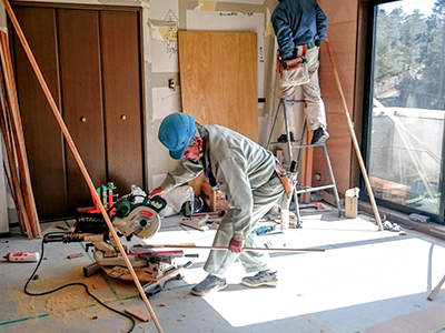 丸山工務店では丸投げ発注は一切行っておりません。信頼できる常用の職人、または長年の付き合いのある協力会社が施工を担当します。弊社担当者が責任を持って全工程を管理いたしますので、どうぞご安心ください。