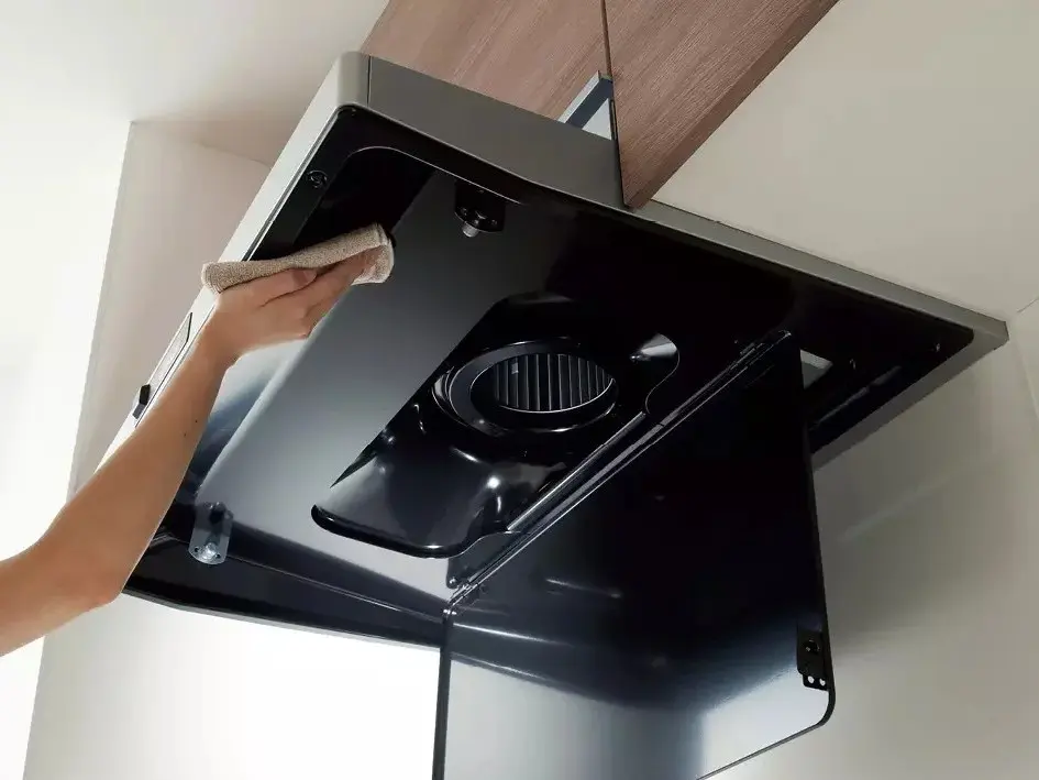 ファンのお手入れは10年不要。フード本体は清流版の手前を外して裏側を拭き掃除。凹凸が少なく、お手入れが簡単です。