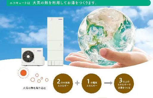 エコキュートはヒートポンプで大気の熱をくみ上げてお湯を沸かすシステムです。