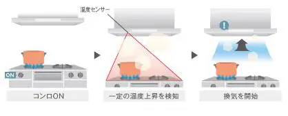 TLR シリーズ クリーンフード 必要な機能を凝縮しているレンジフードです。 コンロの周辺温度を検知して運転開始をサポートしてくれる機能が付いています。