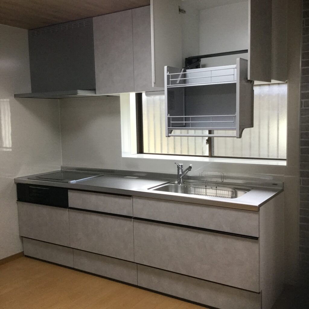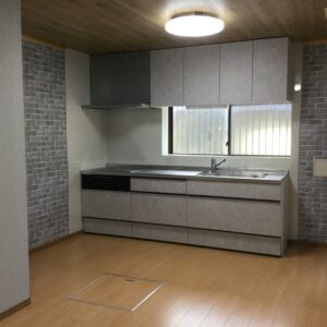 【秩父市/キッチンリフォーム】グレイッシュな内装で男前キッチンに。トイレはヘリンボーンの床でスタイリッシュ!