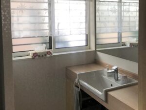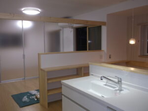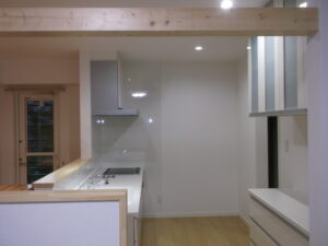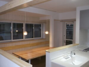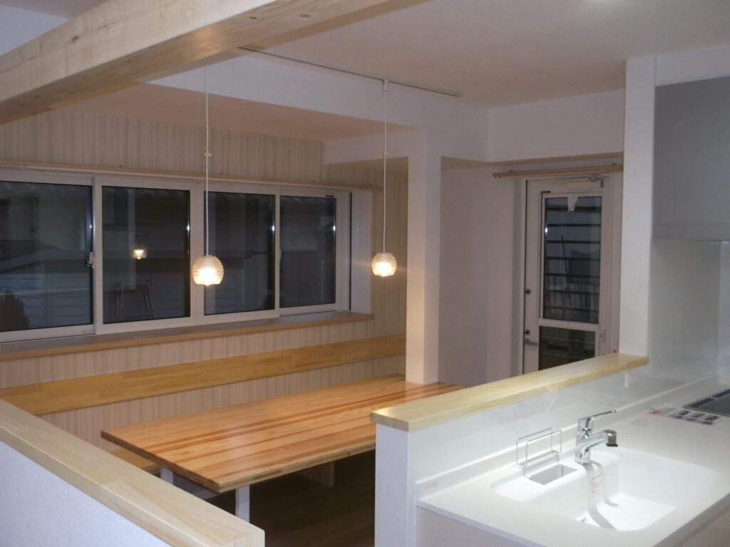 【秩父郡/リノベーション】キッチンの向こうにはかわいいお孫さん達が大集合/間仕切りはスクリーンパーテーション/家族の様子を感じられる家